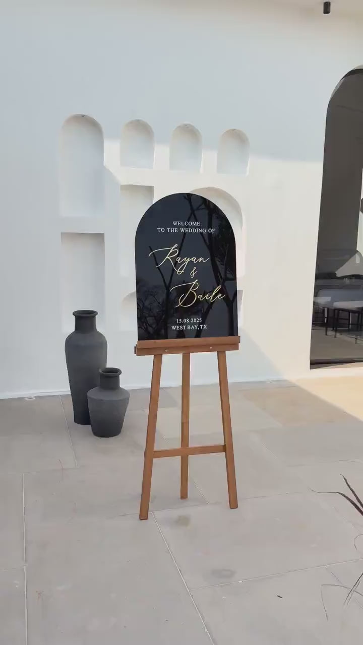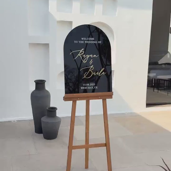 Shinny Black Acrylic Welcome Sign, Arched Shaped Wedding Sign - Wedding Decorations - Wedding Reception Signage - Personalized Welcome Sign