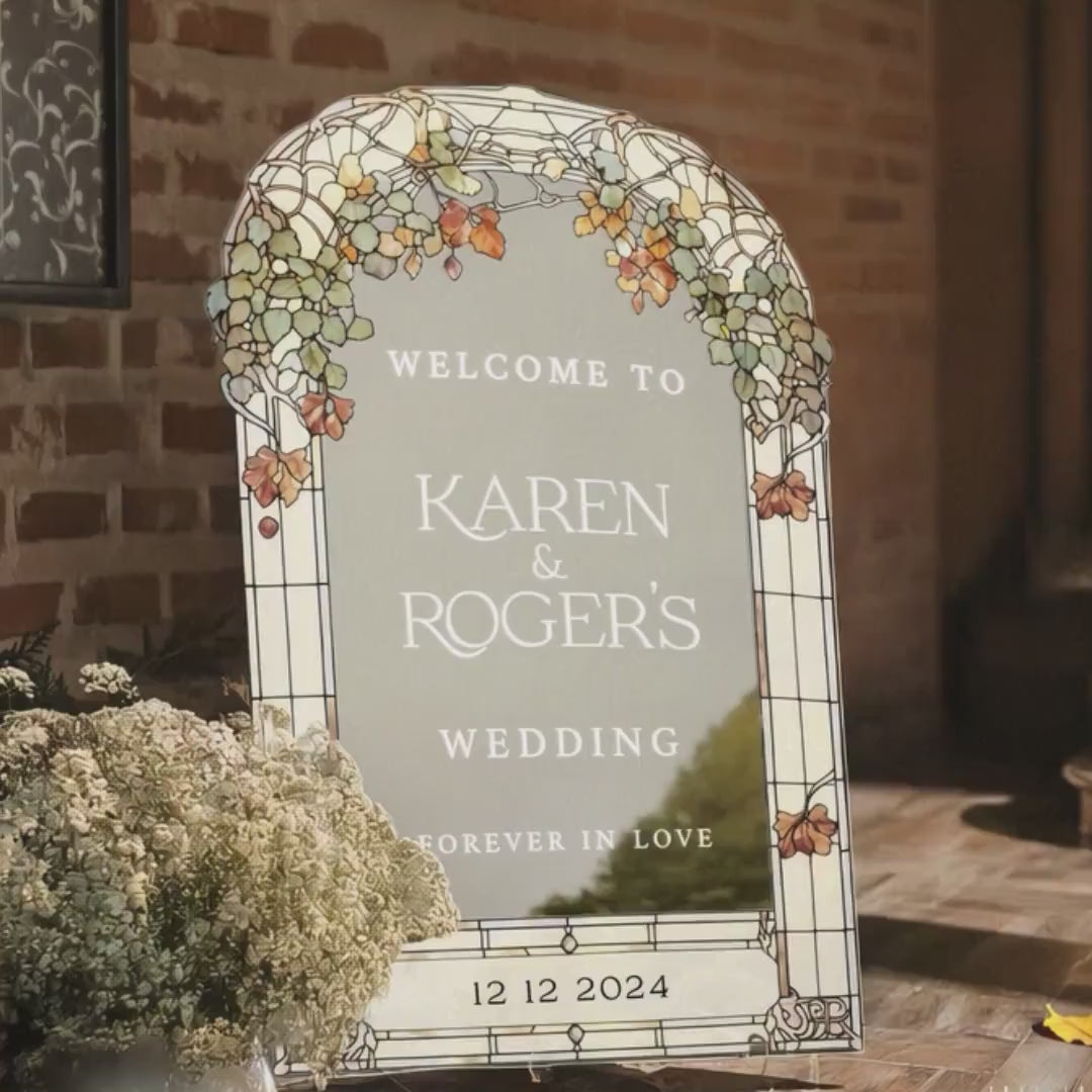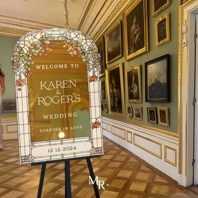 Stained Glass Floral Wedding Sign, Forever In Love Wedding Welcome Sign, Mirror Or Frosted Acrylic Wedding Entrance Sign