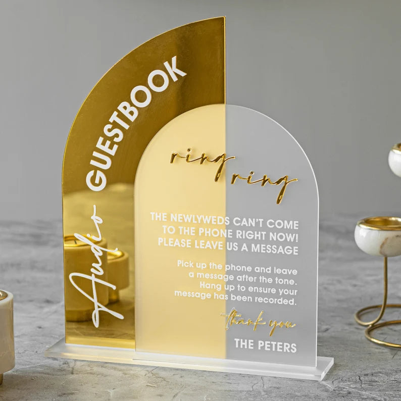 Audio Guestbook Sign, Wedding Guestbook Sign, Telephone Guest Book Sign, Wedding Reception Decor, Wedding Signage, Gold Mirror Wedding Signs