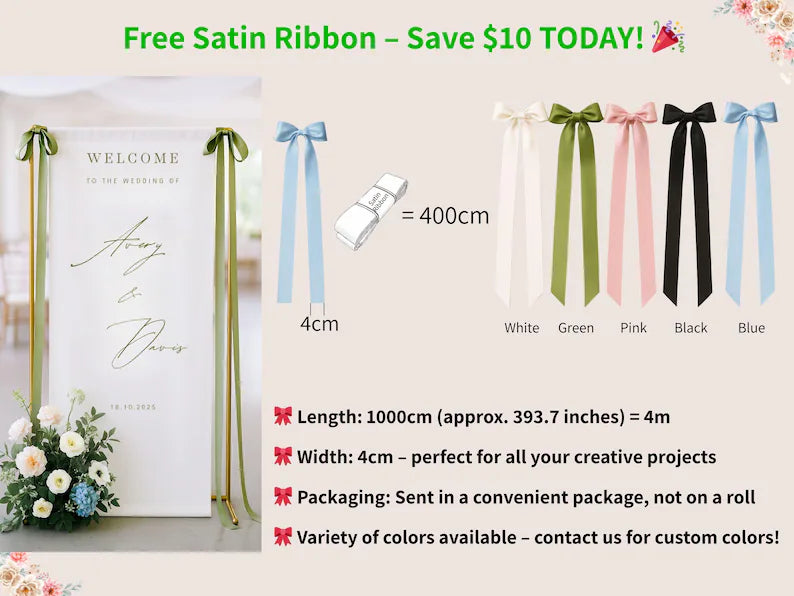 Our wedding just finished and everyone is asking about this banner. The dark green text and ribbon are truly a top-tier combo, both classy and not dated. Love it! 💚