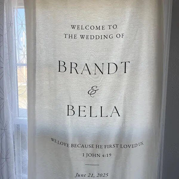 Minimalist Wedding Welcome Sign, Custom Fabric Wedding Banner with Names & Date, Outdoor Garden Ceremony Decor, Personalized Linen Sign
