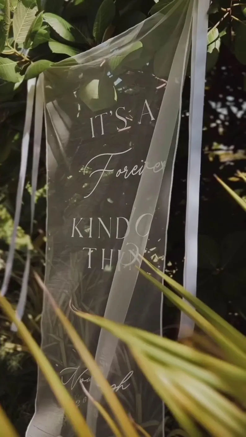 Romantic Sheer Wedding Sign, Linen Wedding Welcome Sign, Modern Outdoor Wedding Banner, Personalized Wedding Decoration, Engagement Party Sign