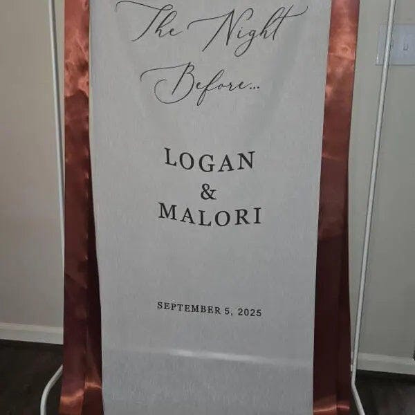 Custom Fabric Wedding Sign | Welcome to the Wedding of Banner | Satin Ribbon Edge | Romantic Wedding Decor | With Stand
