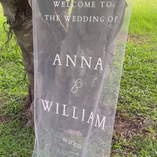 Sheer Wedding Sign, Romantic Wedding Sign, Wedding Backdrop, Voile Wedding Banner, Organza Wedding Sign, Fabric Welcome Sign