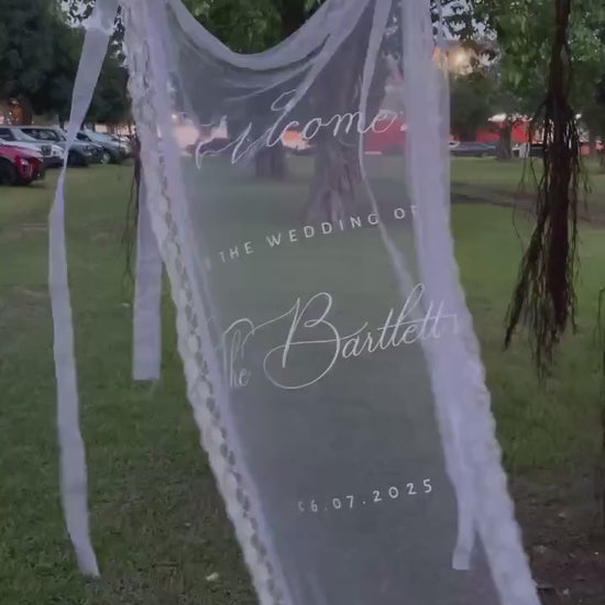 Welcome Fabric Sign, Sheer Sign, Fabric Sign, Wedding Veil, fabric sign, Custom Wedding Welcome Sign, Personalized Lace Edge Sign