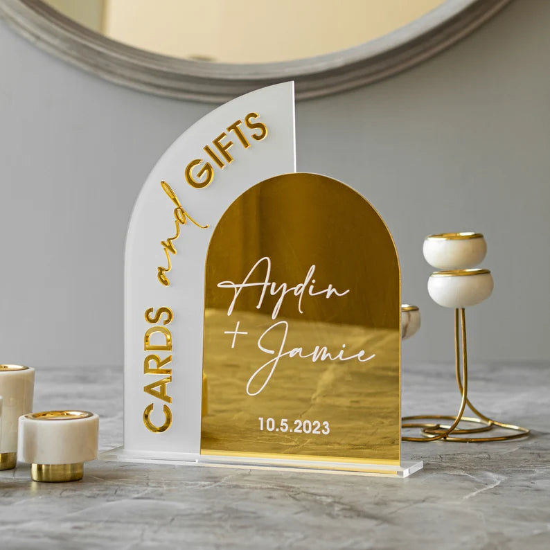 Cards And Gifts Sign, Gold Mirror Wedding Signs, Wedding Signage, Cards and Gifts Wedding Sign, Gift and Cards Sign, Wedding Reception Decor