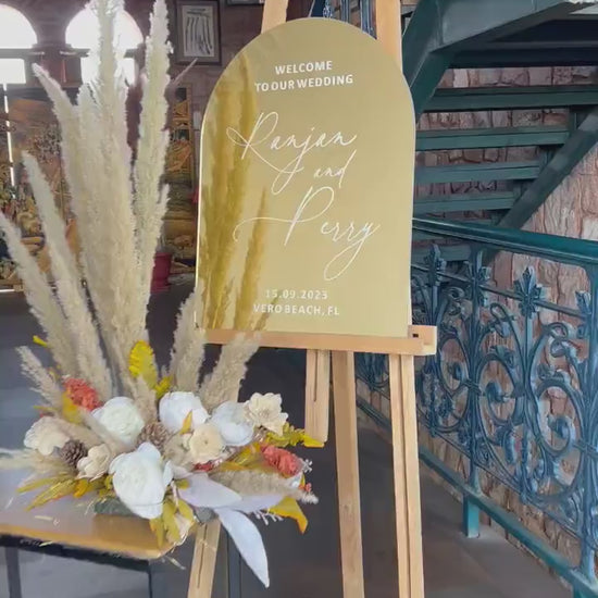 Arched Wedding Welcome Sign, Gold Mirror Acrylic Welcome Sign, Gold Mirror Wedding Signage, Custom Weddin Sign, Wedding Stationery