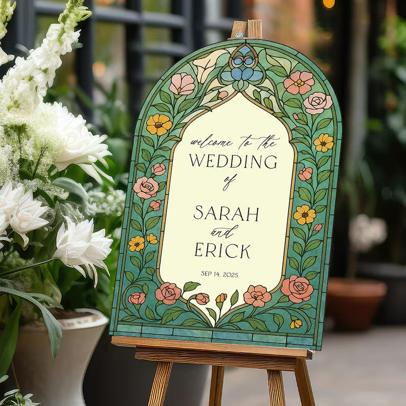 This isn't just a sign, it's a literal piece of art. The Art Nouveau style is absolutely stunning. It felt like we had a custom masterpiece welcoming everyone to our wedding.