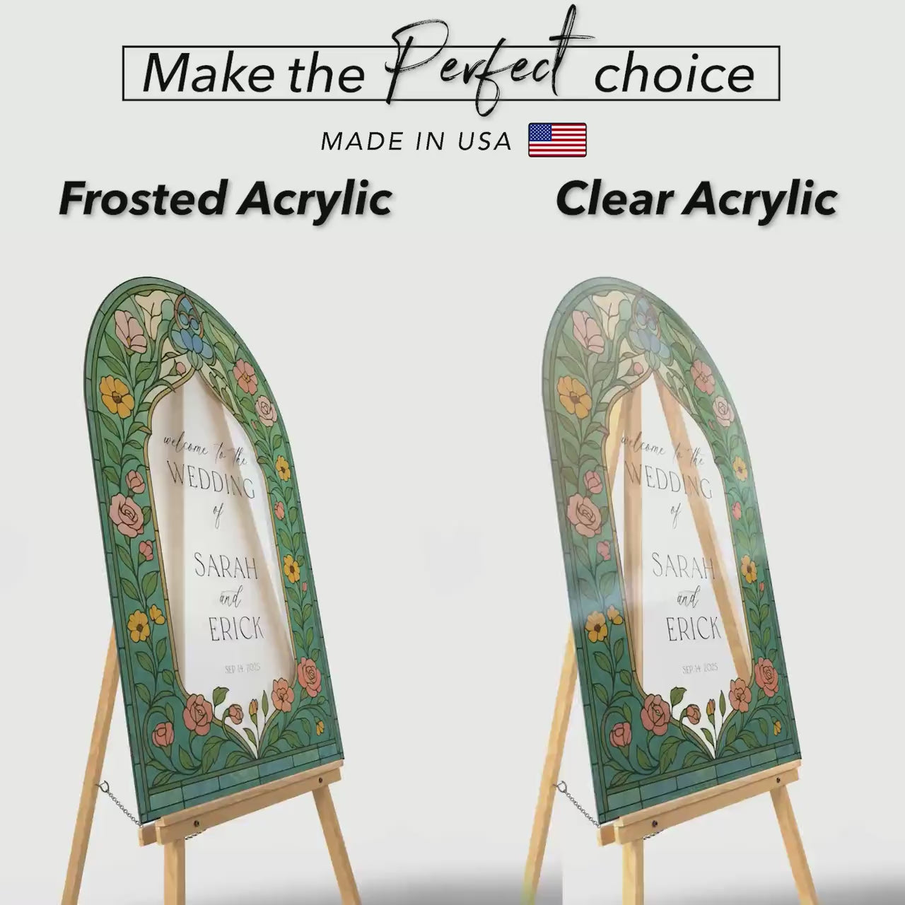Stained Glass Wildflowers Wedding Sign, Floral Mirror Wedding Welcome Sign, Printed Frosted Acrylic Wedding Sign, Wildflower Wedding Decor