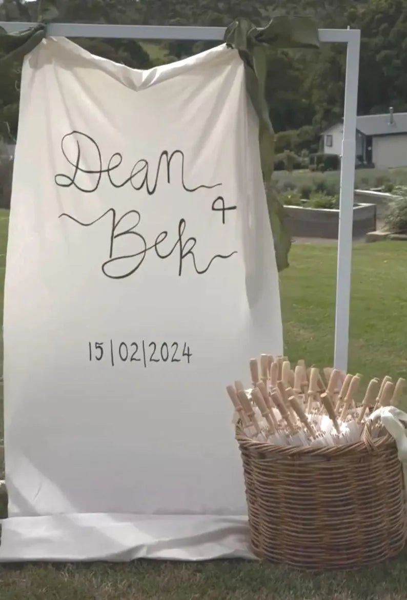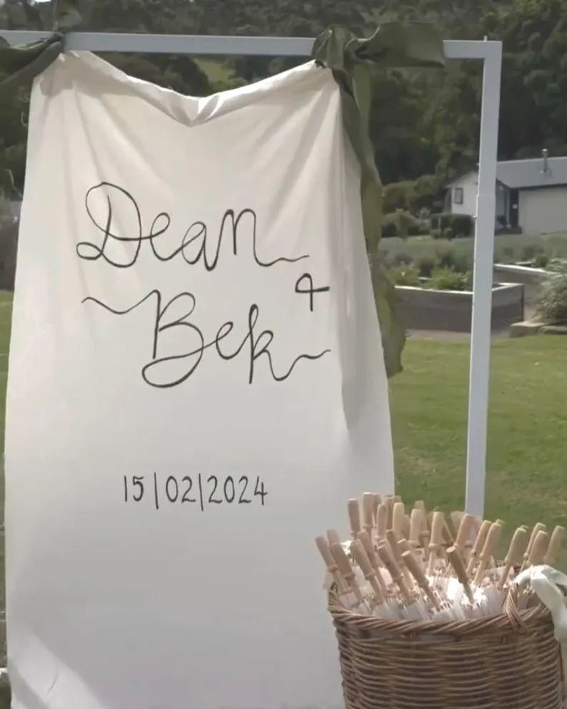 Custom Wedding Fabric Sign, Linen Wedding Welcome Sign, Modern Outdoor Wedding Banner, Personalized Wedding Decoration,Engagement Party Sign