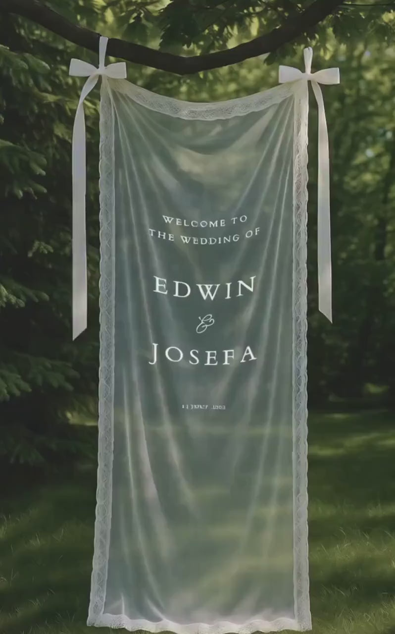 Welcome Fabric Sign, Sheer Sign, Fabric Sign, Wedding Veil, fabric sign, Custom Wedding Welcome Sign, Personalized Lace Edge Sign