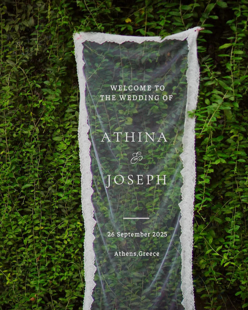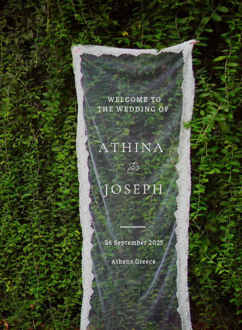 Sheer Wedding Sign, Romantic Wedding Sign, Wedding Backdrop, Voile Wedding Banner, Organza Wedding Sign, Fabric Welcome Sign